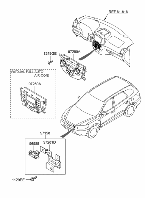 HyundaiPartsDeal.com offers the wholesale prices for genuine 2006 Hyundai Santa Fe New Body Style - Produced Before SEP.10.2006 (Korean) parts. Parts like Heater System-Heater Control are shipped directly from authorized Hyundai dealers and backed by the manufacturer's warranty. Parts fit for the following vehicle options. Body: 5 Door Wagon.