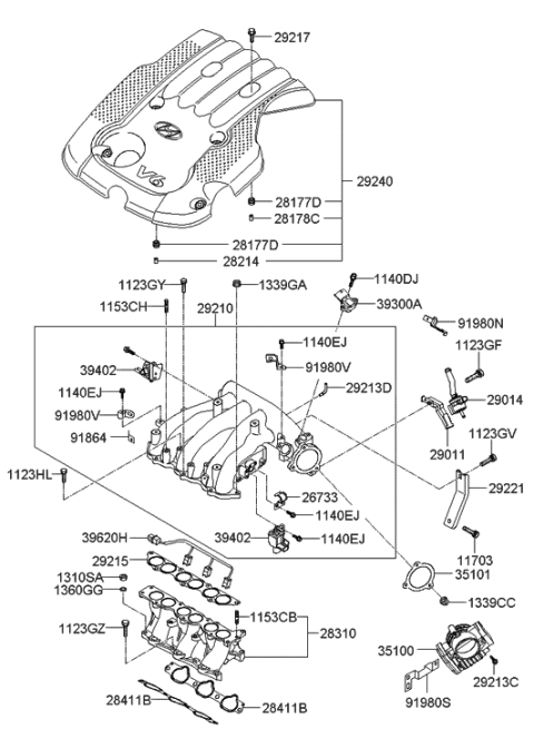 HyundaiPartsDeal.com offers the wholesale prices for genuine 2006 Hyundai Santa Fe New Body Style - Produced Before SEP.10.2006 (Korean) parts. Parts like Intake Manifold are shipped directly from authorized Hyundai dealers and backed by the manufacturer's warranty. Parts fit for the following vehicle options. Body: 5 Door Wagon.